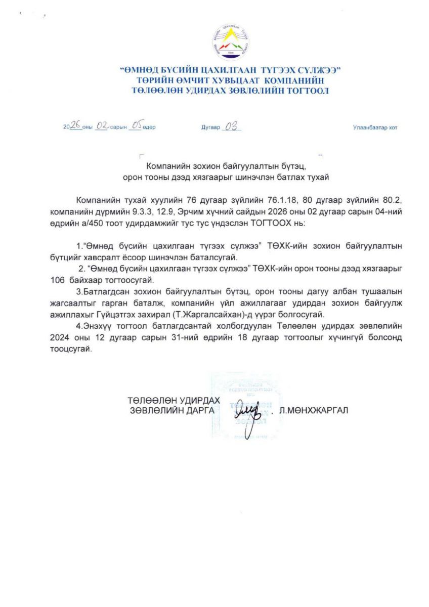 БҮТЭЦ ЗОХИОН БАЙГУУЛАЛТ
