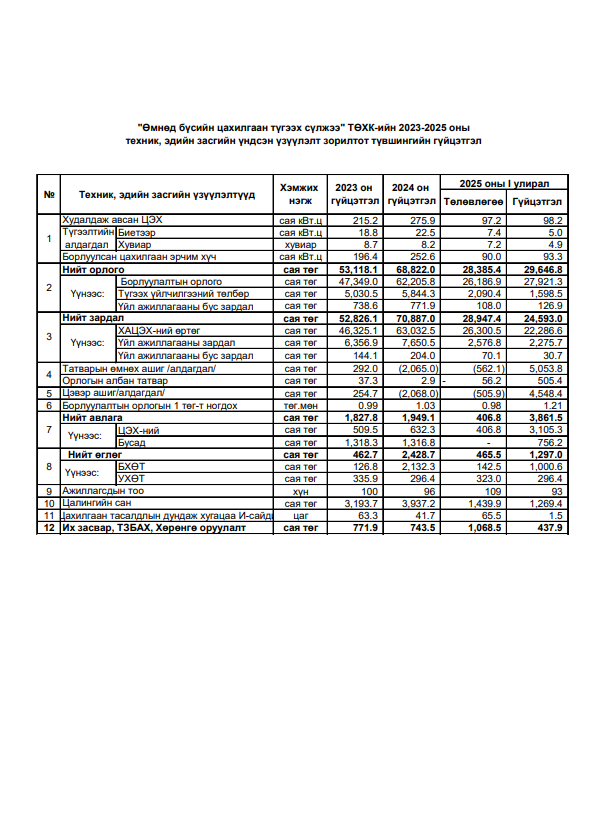 Компанийн 2023-2025 оны батлагдсан техник, эдийн засгийн үндсэн үзүүлэлт зорилтот түвшин гээд