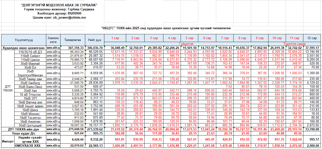 2024 оны худалдаж авсан цахилгаан эрчим хүч